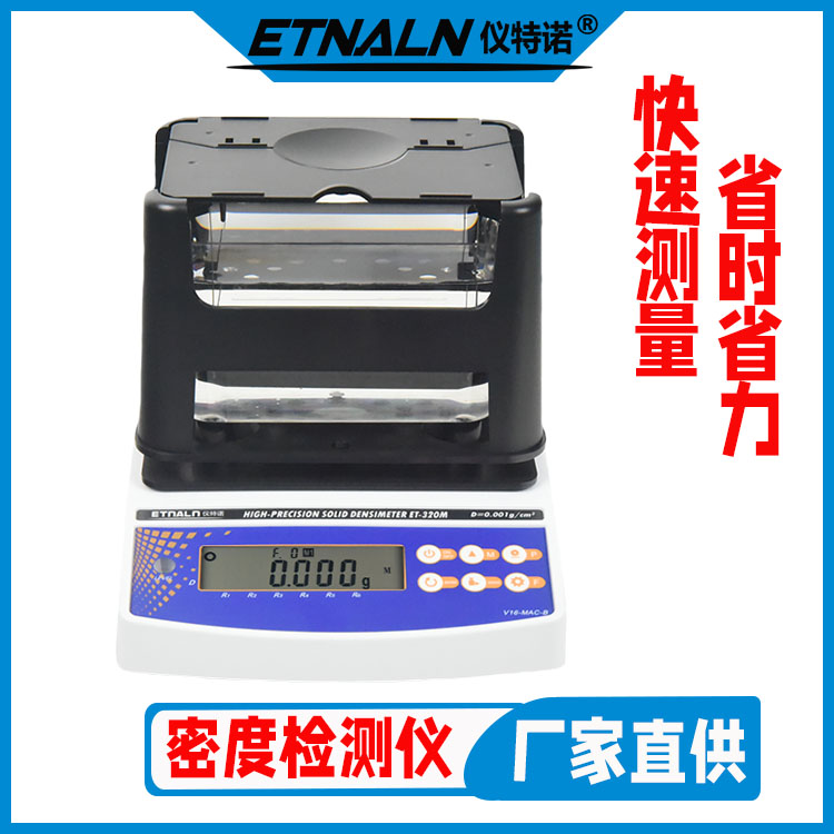 不同型號的密度計有效位也有所不同,如ET-120S、ET-220S密度有效位為 0.0001g/cm3,ET-320、ET-600、ET-320M、ET-1200 密度有效位為 0.001 g/cm3。