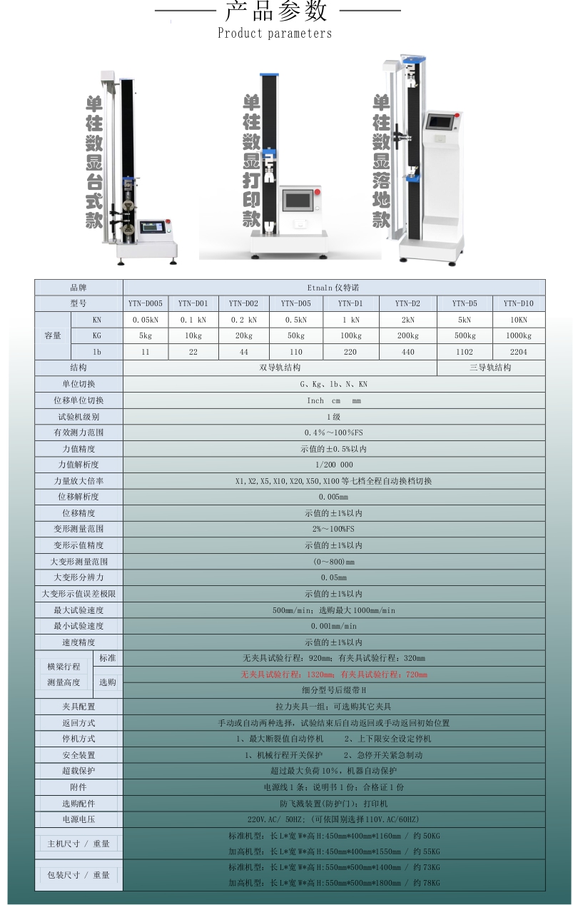 保鮮膜拉力試驗機_包裝薄膜拉力試驗機YTN-D05,容量KN:0.5kN;KG:50kg;lb:110.該機型主要用于負荷低于0.5kN的材料試驗,廣泛應用于工廠、高校、科研單位、質檢機構等。(YTN-D系列單柱萬能拉力試驗機型號規格多,按需選型)。